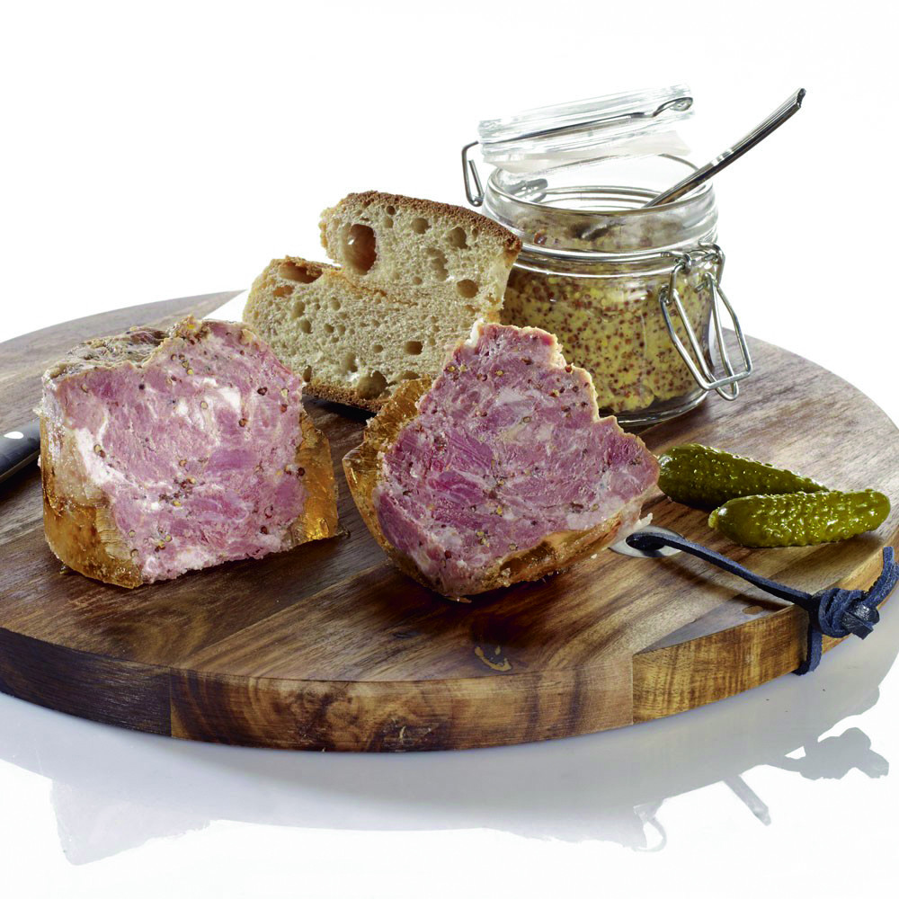 | Ingrédients | Ingrédients: Jarret de porc 86%, moutarde à l'ancienne 5% (eau, graines de moutarde, vinaigre d'alcool, sel, vin blanc (sulfites), sucre, épices, acidifiant : acide citrique, conservateur : disulfite de potassium), sel, gélatine, Armagnac, poivre, sucre, conservateur : nitrite de sodium. Viande de porc origine : France. |
