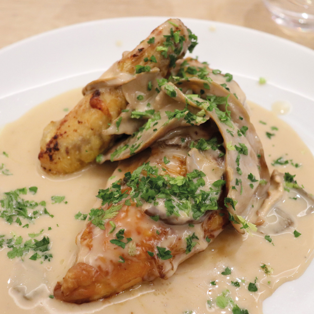 Un plat délicieusement mijoté avec des morceaux de dinde, accompagnés d’une onctueuse sauce crémée au jus de truffe d’été. L’ensemble agrémenté d’éclats de marron de cèpes.